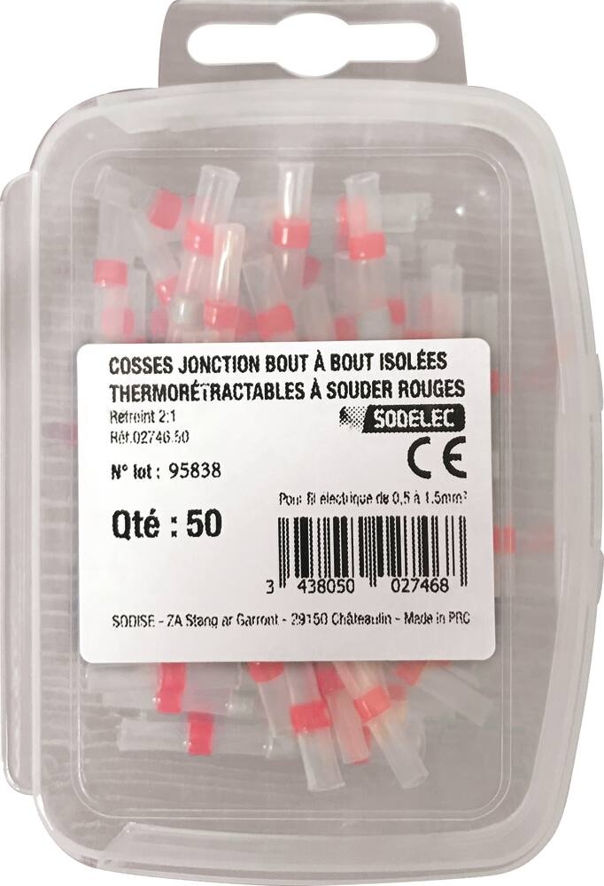 Cosse jonction bout à bout isolée thermorétractable à souder rouge - lot de 10 pcs