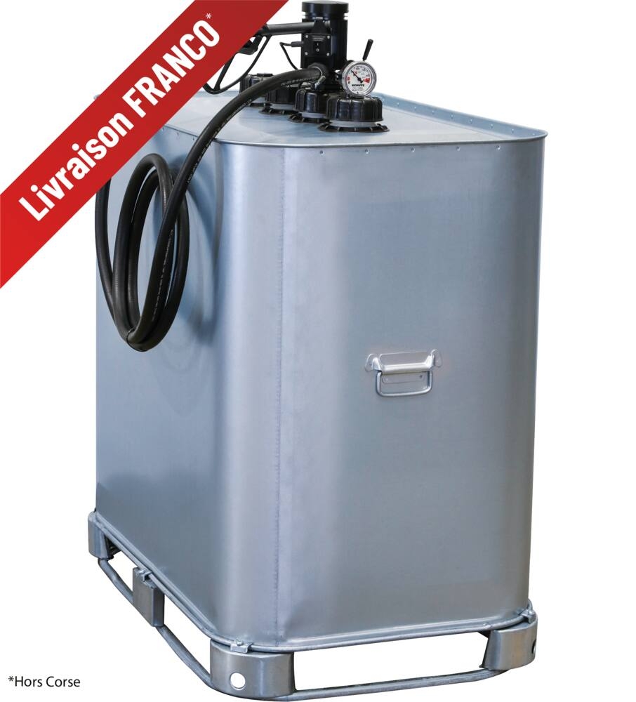 Cuve de stockage gasoil galvanisée 700L double paroi avec kit pompe à gasoil 230V 35 l/min
