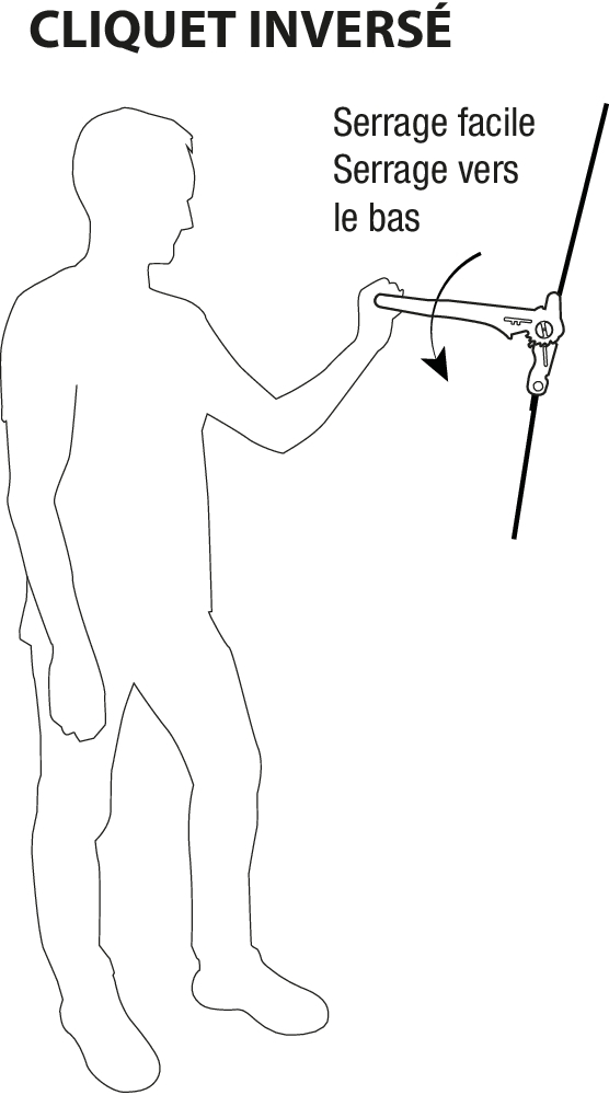 Le cliquet inversé permet de réduire la force nécessaire à la mise en place de la sangle.