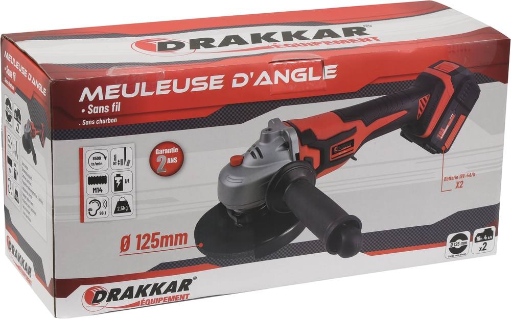 Meuleuse d'angle brushless 125mm 18V 2 batteries 4Ah Li-ion - sac de transport