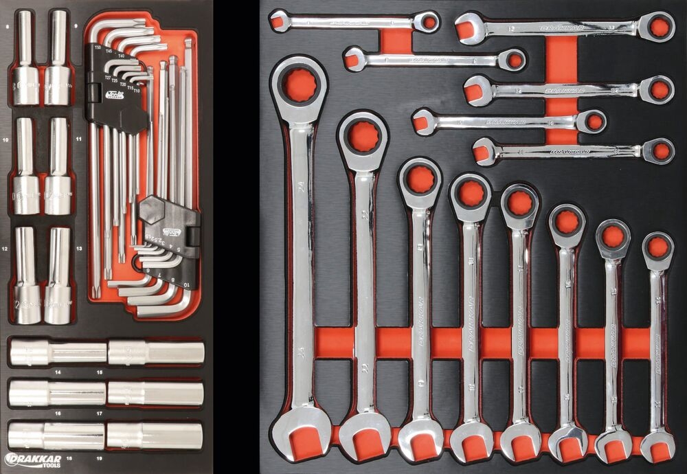 Plan de travail en ABS avec empreinte pour 6 tournevis, 2 aérosols.