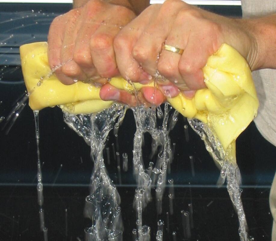 Peau chamoisée PVA ultra absorbante à base d'acétate polyvinylique, avec une fibre de polyester pour la rendre plus forte et lui donner une durée de vie plus longue.