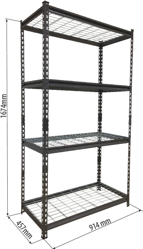 Etagère métallique à emboîter 4 tablettes grillagées 1674x914x457mm max 1T