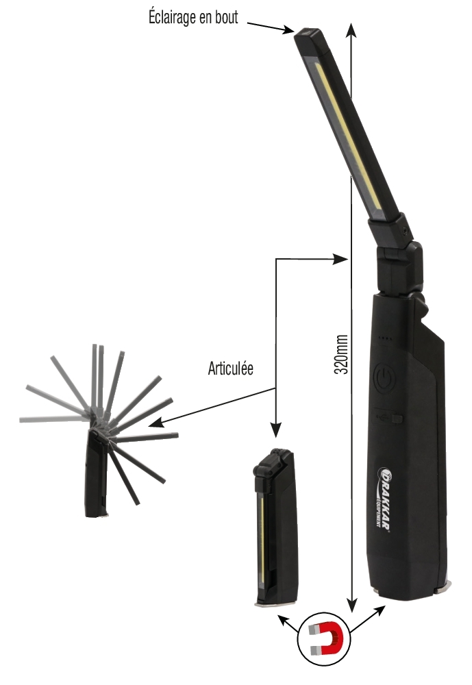 Baladeuse d'atelier LED 500 lumens repliable rechargeable
