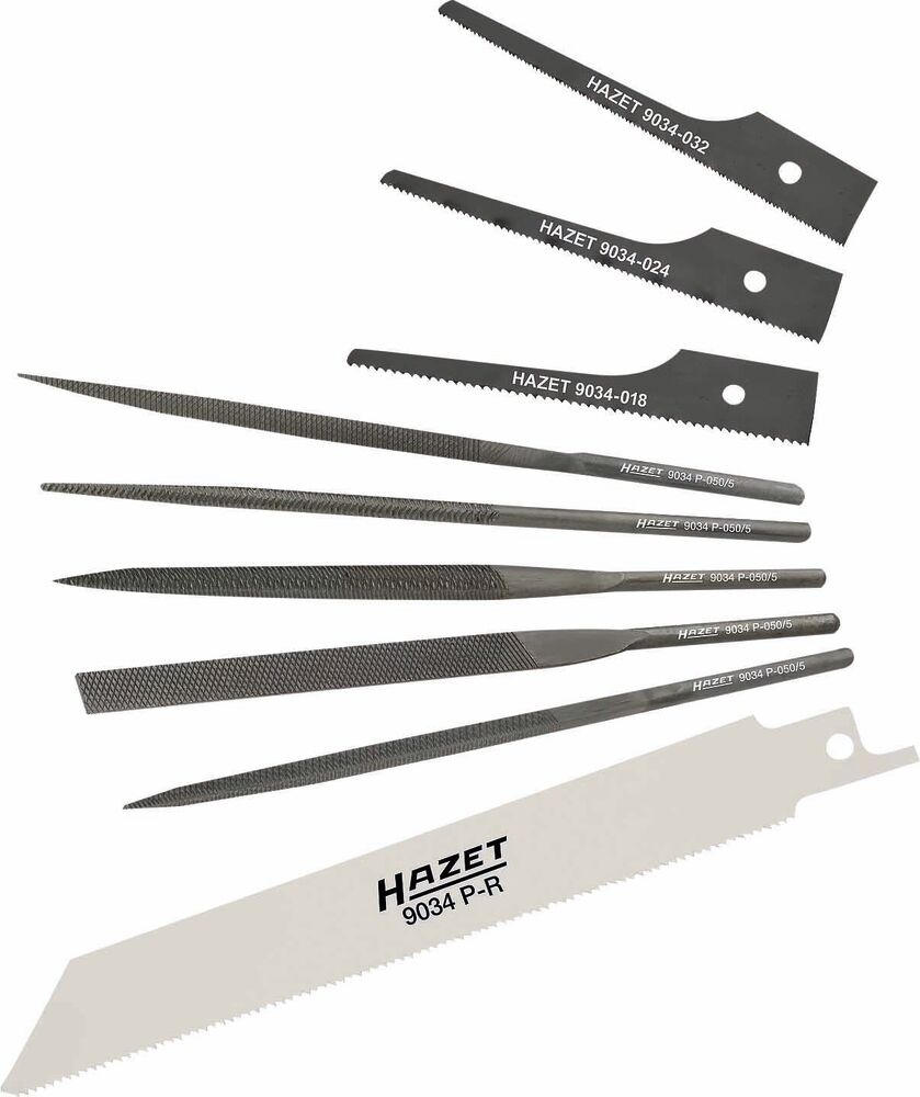 Contenu : - 1 scie sabre - 3 lames de scie, de 18/24/32 dents (longueur totale : 93mm) - 1 lame de scie réciproque, 18 dents (longueur totale : 153mm) - 5 limes (longueur totale : 135mm) - 1 clé pour vis à 6 pans intérieurs (dans le manche).