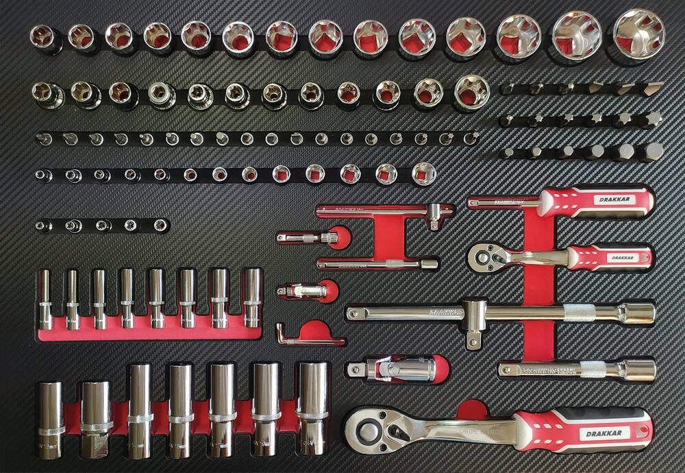 Servante d'atelier 7 tiroirs composée de 180 outils - modules carbone