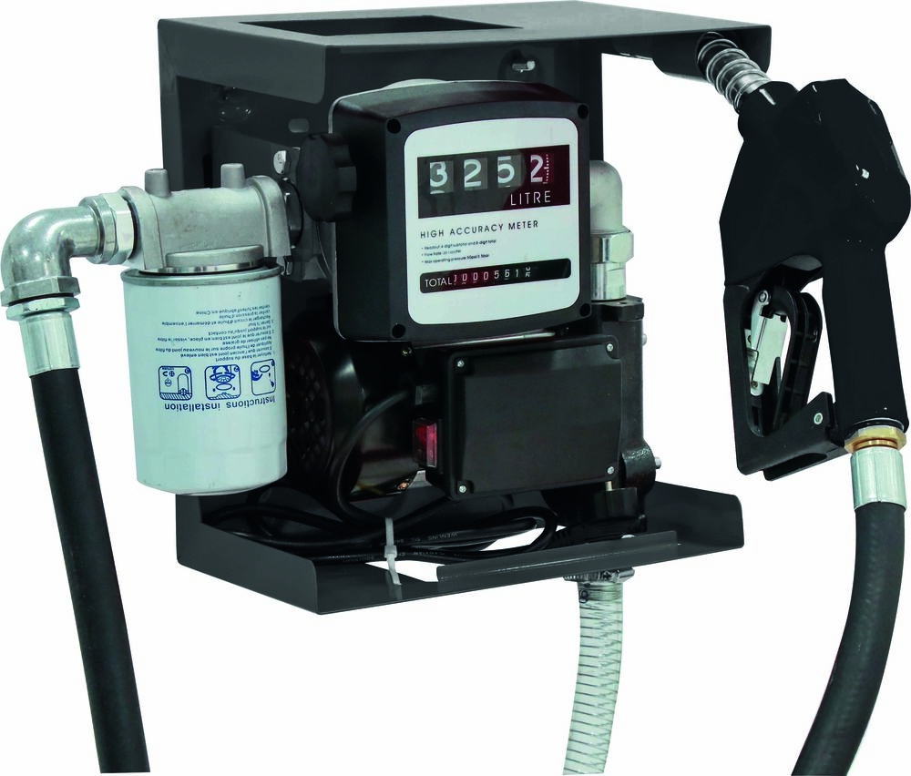 Pompe à gasoil 230V 50 l/min avec pistolet automatique/volucompteur/filtre - station murale