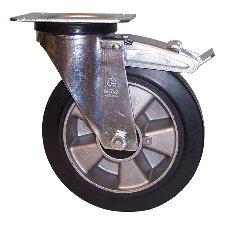 Chape zinguée moyenne pivotante + frein aluminium + caoutchouc D.100mm