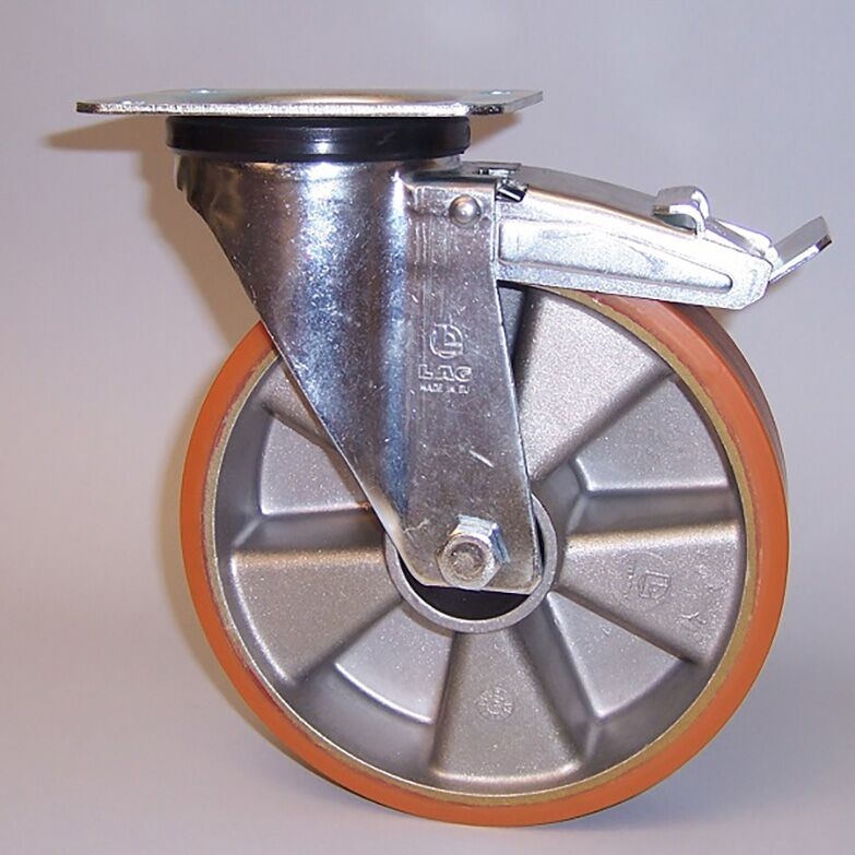 Chape zinguée moyenne pivotante + frein aluminium + polyuréthane D.200mm