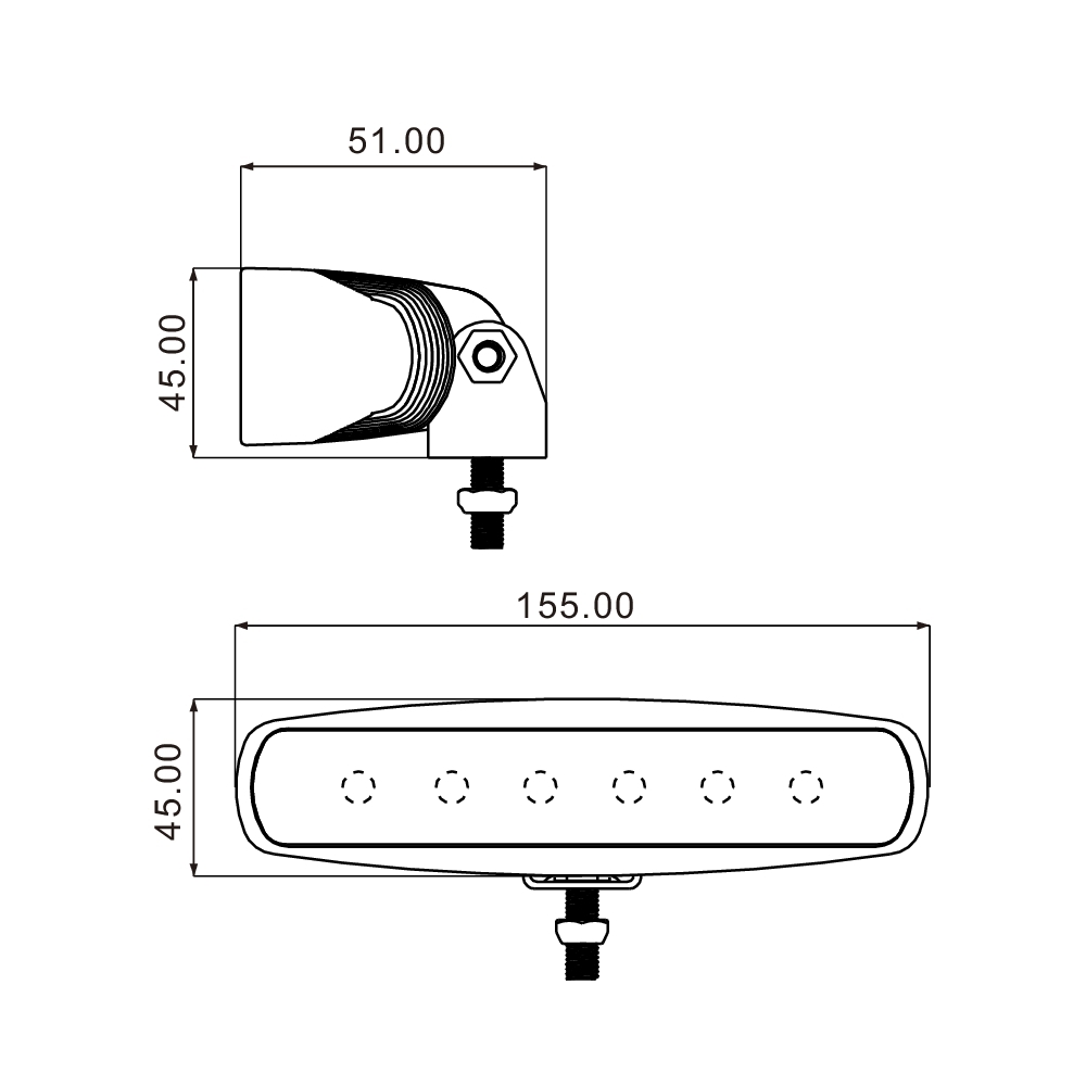 Phare de travail rectangle LED 10/30V 18W 1200 lumens faisceau large - blister
