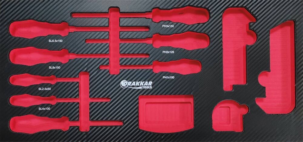 Module mousse vide - finition carbone pour tournevis et clés coudées - pour coffre